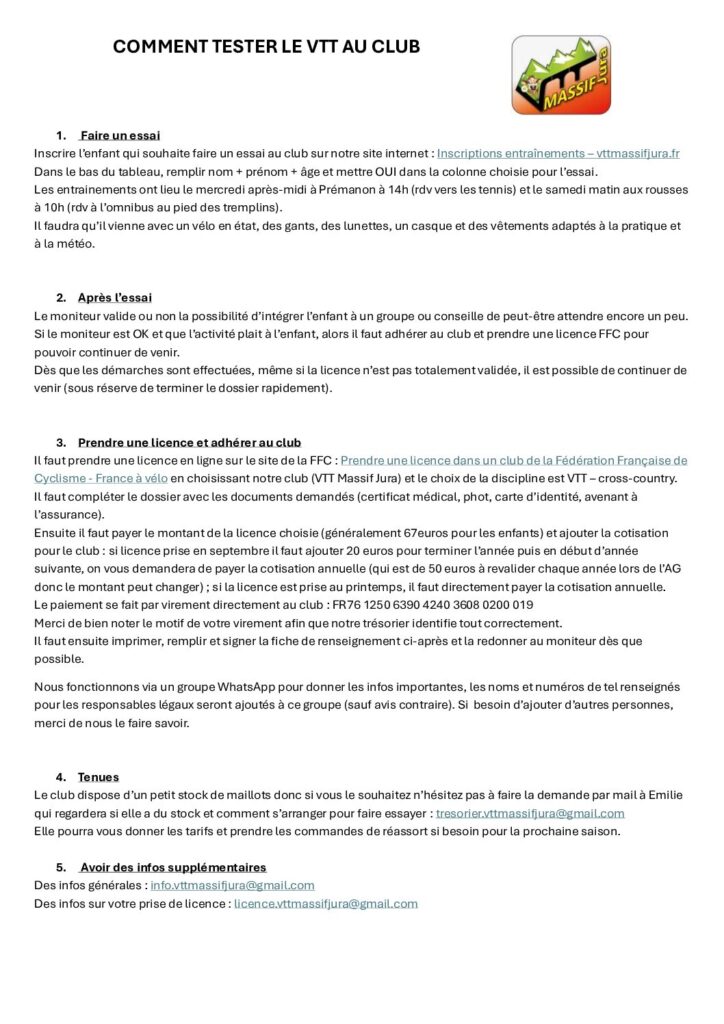 Si vous avez des questions, vous pouvez envoyer un mail à : licence.vttmassifjura@gmail.com